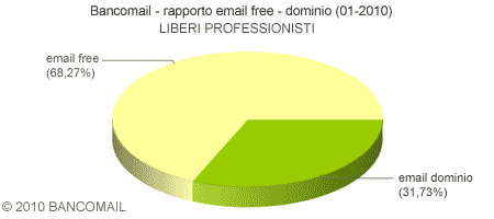 Come si può evincere dalla seconda immagine , la percentuale di email “free” tra i professionisti è molto alta e si attesta al 68,27% del totale.