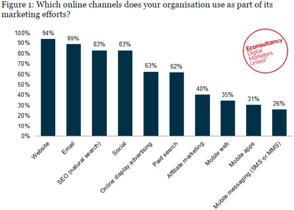 La tabella seguente fornisce un’indicazione della gamma dei canali digitali utilizzati dai marketers.