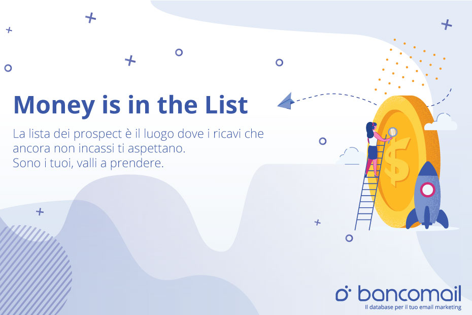 Il segreto per produrre più utili è capitalizzare queste basi di dati, per questo “Money is in the List”: la lista dei prospect è il luogo dove i ricavi che ancora non incassi ti aspettano, sono i tuoi, valli a prendere.