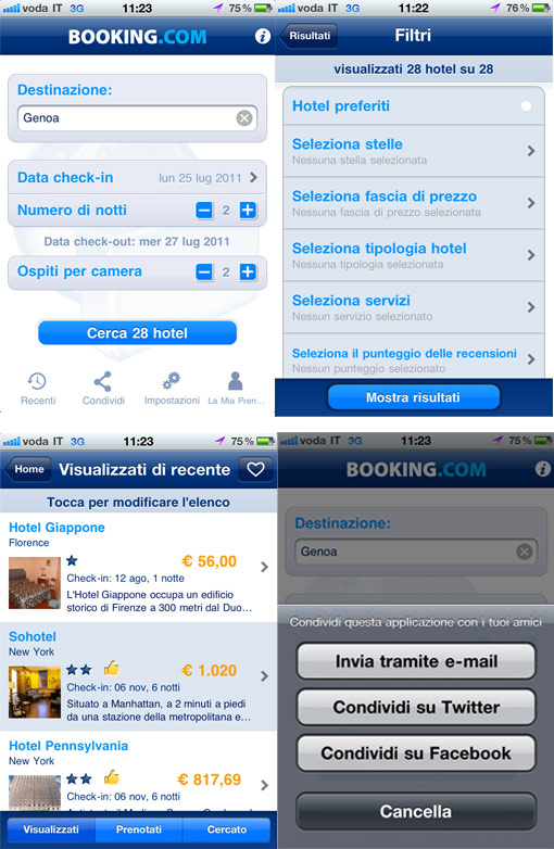 La più famosa Booking.com esistente per smartphone quali Android, Blackberry, iPhone e iPad e la crescente Airbnb per ora solo per dispositivi mobili Apple.